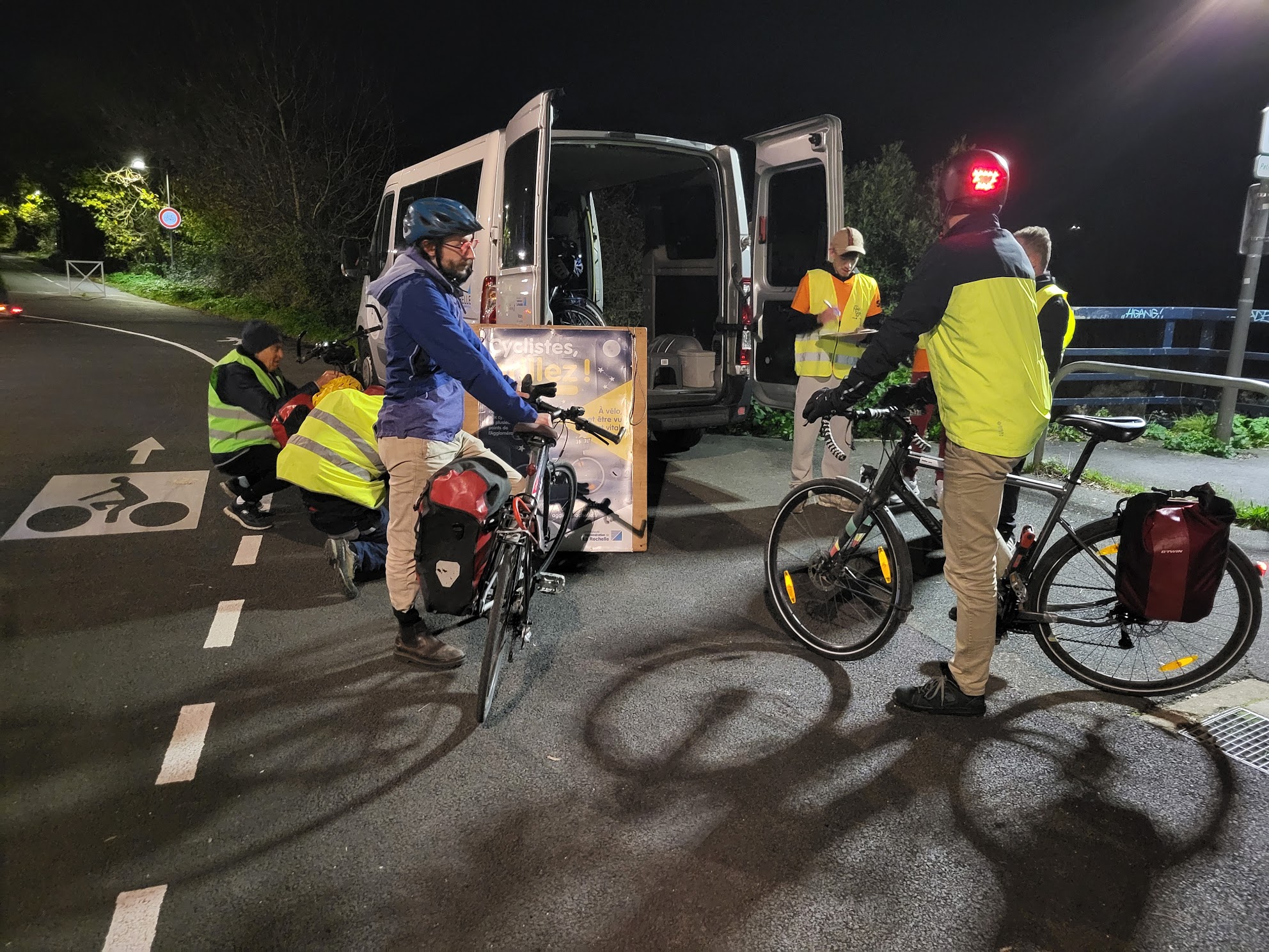Dans une ambiance chaleureuse et dynamique, nos bénévoles ont pu échanger avec des centaines de cyclistes. Ceux qui n’étaient pas équipés se sont vu remettre gratuitement des éclairages portatifs rechargeables, gracieusement offerts par la Ville de La Rochelle.