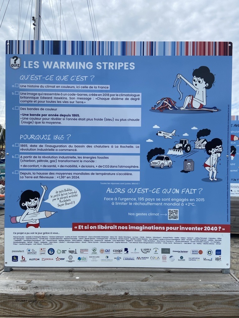 Nous étions présents ce samedi 27 septembre pour l’inauguration de la frise géante « Warming Stripes » installée sur le quai de la Georgette à La Rochelle.