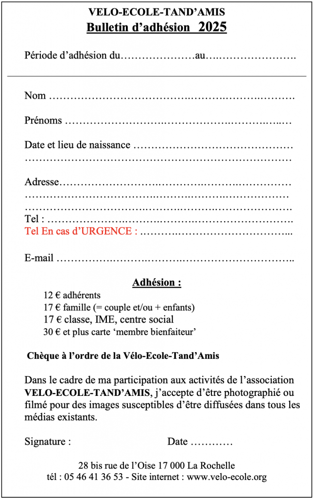 Adhésion à notre association : 10 € adhérent / 15 € famille / 15 € classe, IME, centre social / 20 € et plus carte « Membre bienfaiteur ».